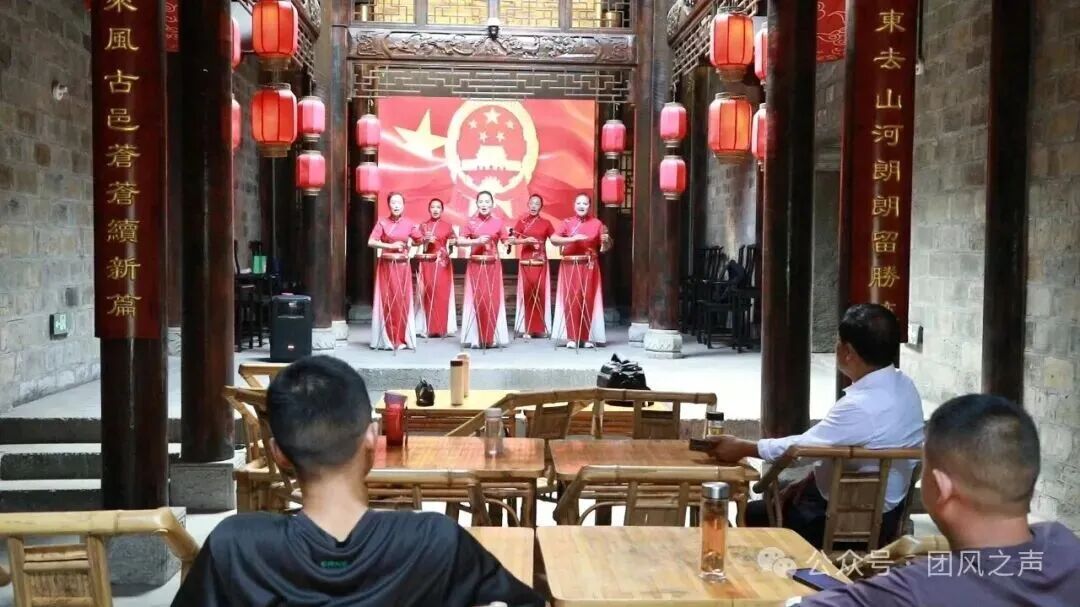 在牛车河旅游度假区的百丈崖古民居,湖北大鼓展演以激昂的曲调和铿锵的唱词吸引了大量游客前来观赏。演员们身着传统服饰,手持鼓槌、云板,以兼具激情与细腻的表演,生动传递了湖北地方文化的深厚底蕴,引发观众强烈共鸣。