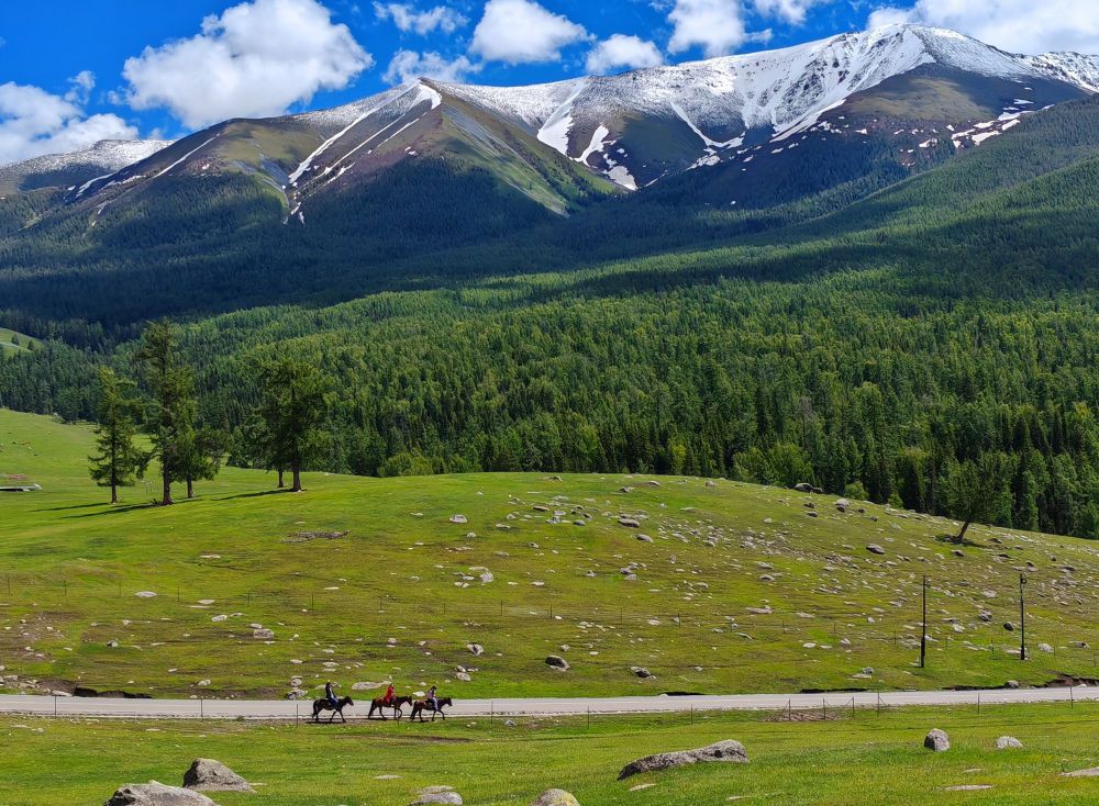 2024年6月4日,游客在新疆阿勒泰地区哈巴河县骑马游玩。电视剧《我的阿勒泰》播出后,新疆阿勒泰地区迎来客流高峰,“张凤侠的小卖部”“巴太树”“彩虹布拉克”等剧中地点成为热门旅游打卡地。这场“边城”与“热剧”双向奔赴的文旅盛宴,为当地经济发展带来新的增长点。2024年5月,当地接待游客415.03万人次,同比增长60.81%;实现旅游收入36.53亿元,同比增长88.25%。