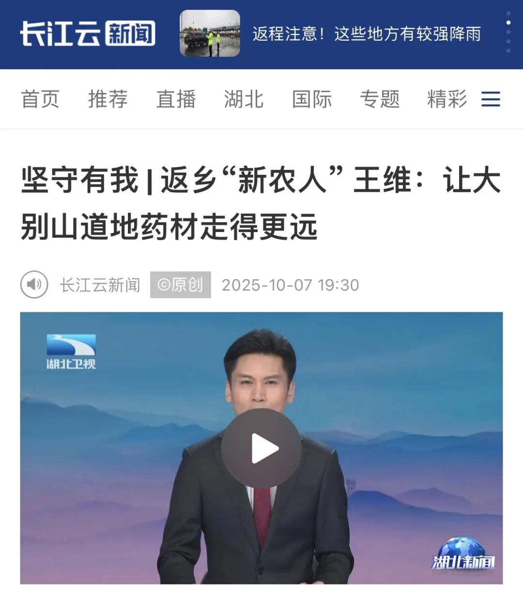 湖北日报客户端、长江云新闻等省媒