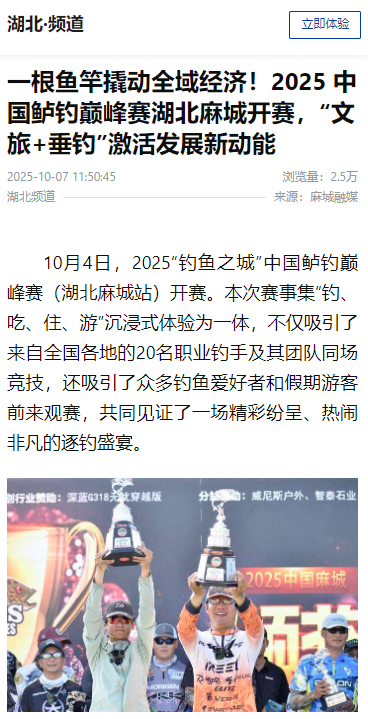 《一根鱼竿撬动全域经济!2025 中国鲈钓巅峰赛湖北麻城开赛,“文旅+垂钓”激活发展新动能》