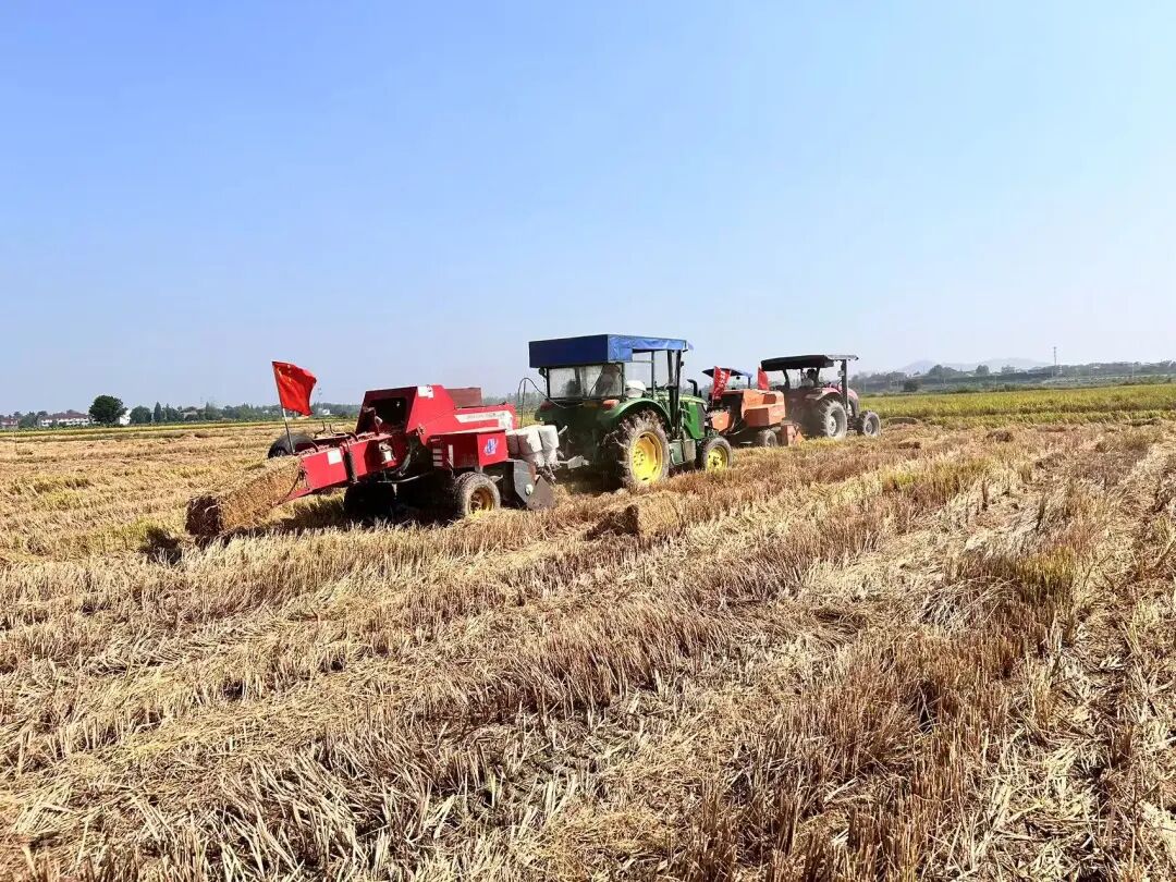 秸秆回收工作的及时开展,为秋播赢得了宝贵时间。打捆机在田间来回作业,将散落的秸秆压缩成整齐的方捆,随后由装载机装车运走。“这套流程既环保又高效。”程国荣指着正在作业的机械说,“秸秆及时离田后,我们就能立即开展土地整理,为本月中旬的油菜播种做好准备。”