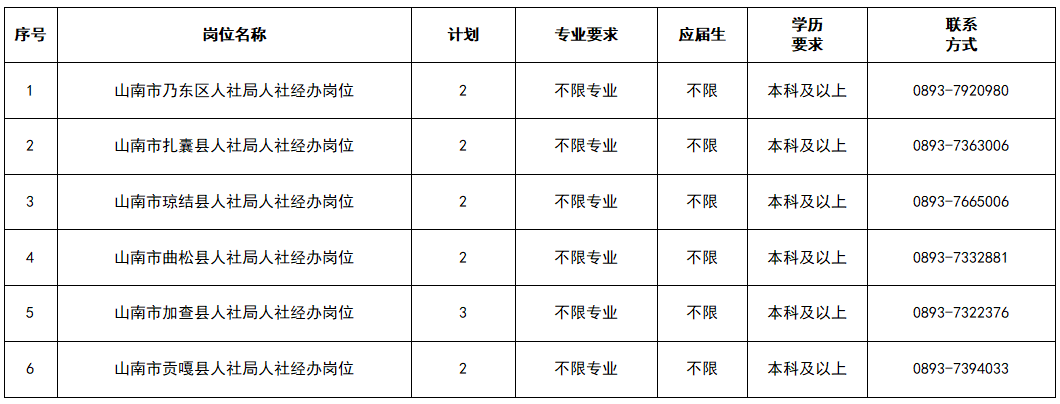 西藏自治区山南市2025年再次面向湖北定向招募“三支一扶”人员岗位表