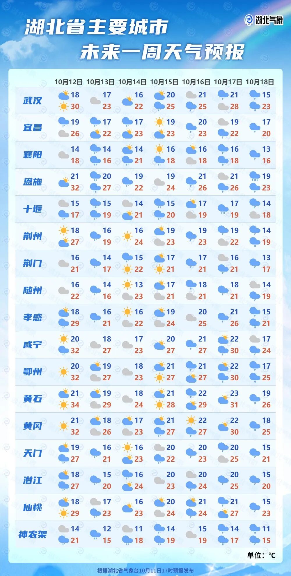 进入10月以来湖北中东部大部地区阳光充足 而相比之下鄂西北的十堰、丹江口、老河口等地仅为0小时接下来湖北的天气如何?