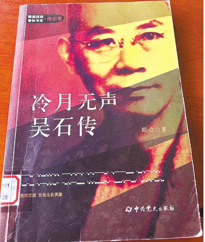 湖北省图书馆三楼历史地理区域书架上,陈列着中共党史出版社2018年出版的《冷月无声——吴石传》。 (湖北日报全媒记者 汤炜玮 摄)
