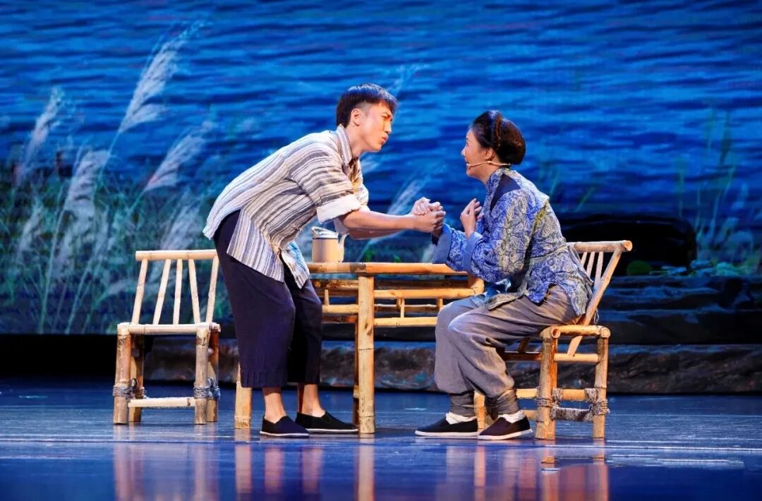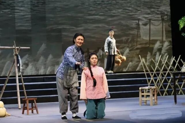 终评舞台上,剧组的心血得到了完美呈现。剧目以渡江战役宏大历史为背景,聚焦团风江边一户普通人家在战火中的婚礼抉择,将“小家婚礼”与“大国大义”紧密相连。演员们用富有张力的表演,将角色内心的挣扎、坚定与奉献刻画得淋漓尽致;简约而富有质感的舞台设计,成功营造出历史现场的沉浸感。当剧中新郎水生毅然告别新娘、回眸奔赴前线的那一刻,家国情怀与儿女情长的交织,达到了震撼人心的艺术效果,现场许多观众不禁潸然泪下。