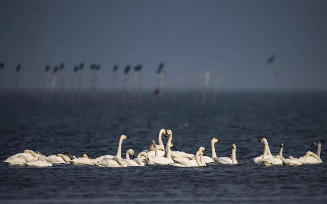 龙感湖国家级自然保护区地处长江中下游鄂赣皖三省交汇处、黄梅县东南部,南与鄱阳湖隔江相望,东与安徽安庆沿江湿地相连,总面积达2.23万公顷。这里生态资源丰富,共记录有489种野生动物、364种野生植物。作为东亚-澳大利西亚候鸟迁徙通道的关键中转站和越冬地,保护区更是鸟类的“乐园”,栖息着189种鸟类。其中,白鹤、白头鹤、东方白鹳、青头潜鸭等国家Ⅰ级保护鸟类9种,小天鹅、白琵鹭、鸿雁等Ⅱ级保护鸟类38种。尤为值得一提的是,白头鹤种群数量曾达425只,占全球总数的3.37%,龙感湖也因此被誉为“中国白头鹤之乡”。