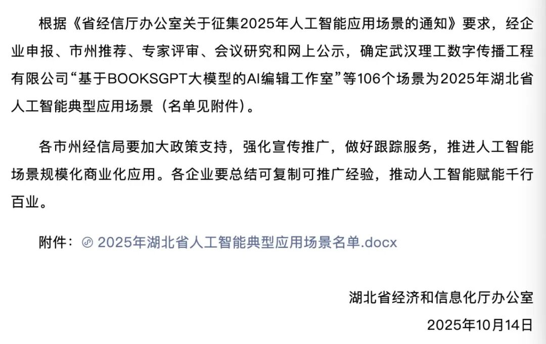 湖北省经信厅发布消息称