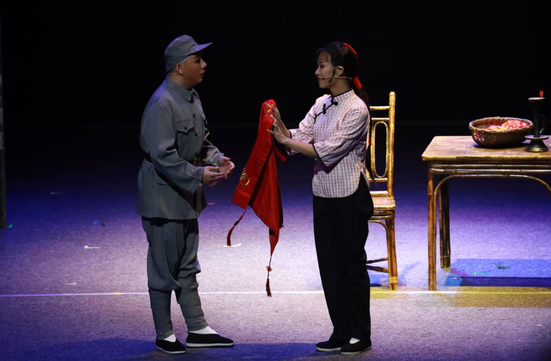 为了这“两股绳”拧得紧实,团队曾花半年时间走访吴祥村、查阅红十五军史料,还邀请黄梅挑花非遗传承人驻场指导,甚至为“红盖头绣什么图案”“春桃得知冬生消息时的表演层次”等细节争论数轮,首演时便以细腻的情感、厚重的内涵打动全市观众。