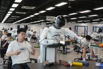 在位于浙江绍兴上虞区的杭州湾具身智能创新中心,工作人员操作机器人进行不同场景作业的数据采集(2025年9月23日摄)。新华社记者 翁忻旸 摄