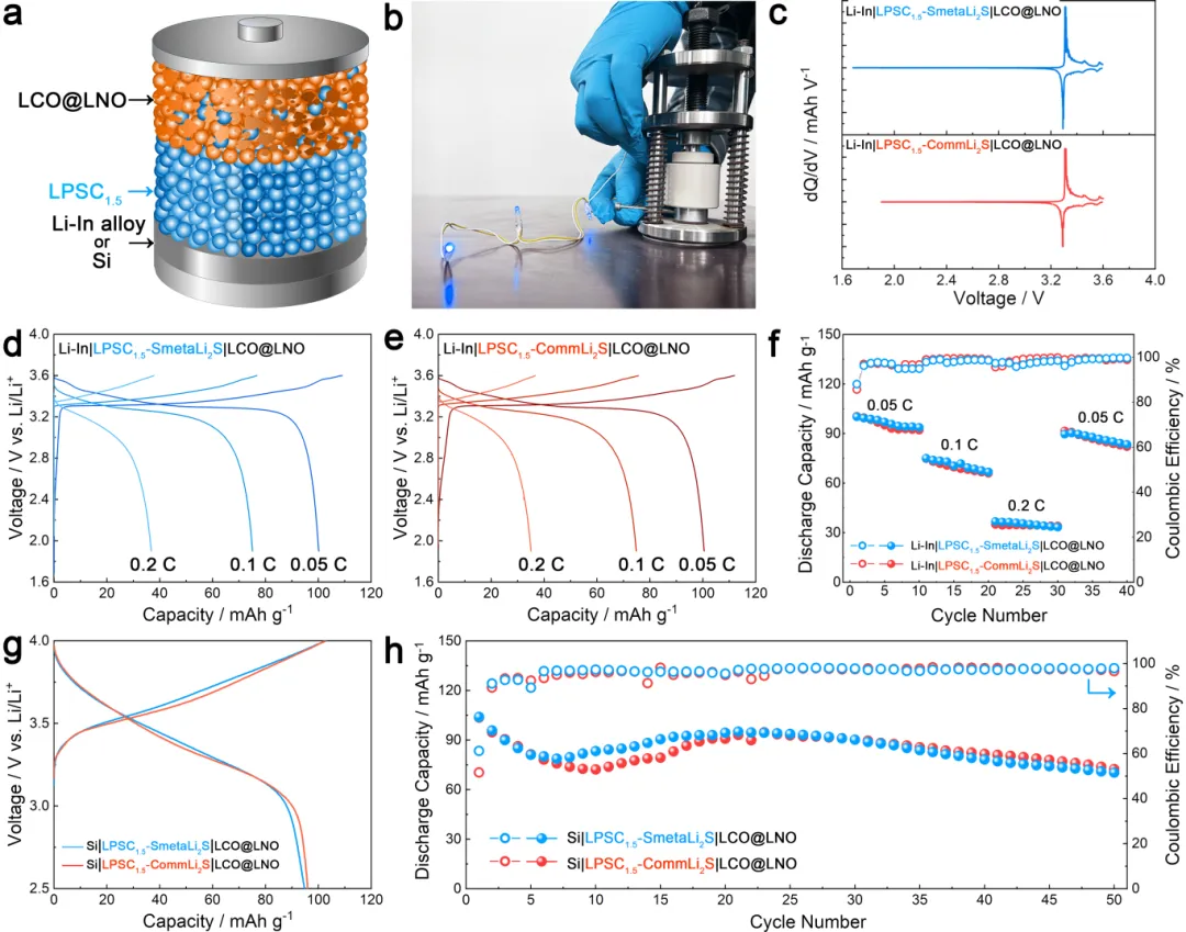 ▲基于本方法与商业化Li2S为原料制备的经典Li10GeP2S12和Li5.5PS4.5Cl1.5硫化物电解质性能对比