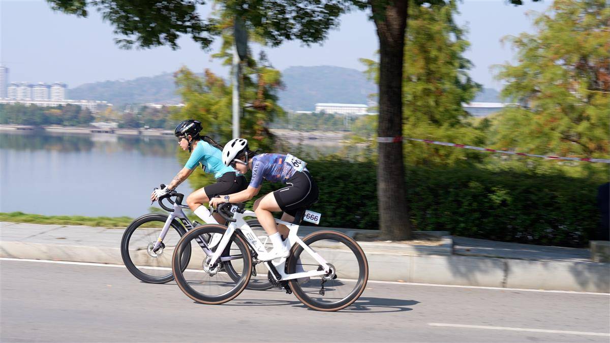 赛道旁观众热情高涨,呐喊助威声不绝于耳。男子公路精英组竞争尤为激烈,选手们在弯道加速、直道冲刺,展现出高超的竞技水平;女子组选手也不甘示弱,你追我赶中尽显巾帼风采;骑游组则更注重体验与交流,不少选手边骑边拍,记录下浠水秋日美景。