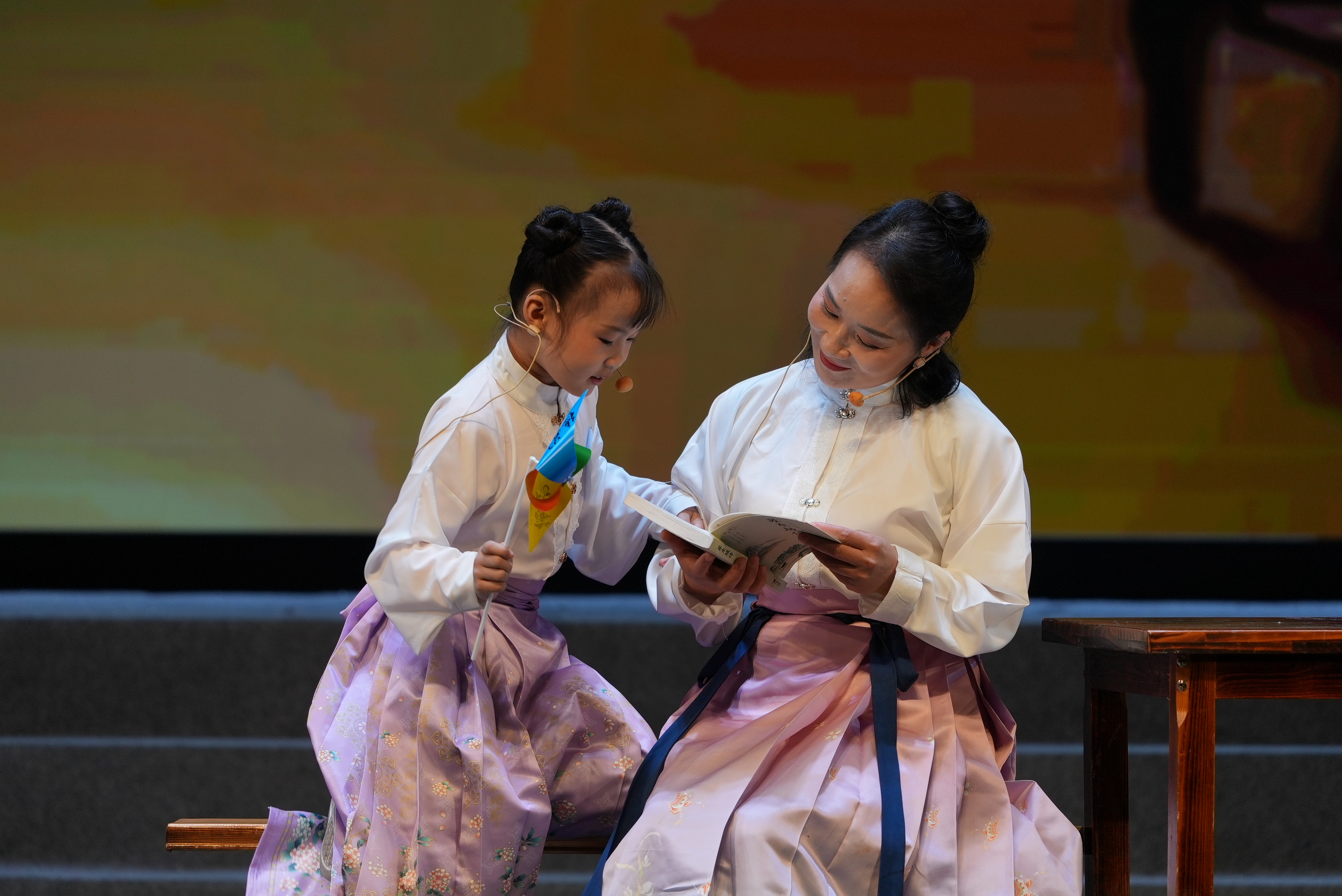 少儿组的比拼同样精彩绝伦,充满了童真与活力。黄冈市齐安学校二年级学生孙英洁扎着马尾辫,带着稚嫩却自信的笑容走上舞台,她凭借与妈妈共读《苏东坡传》的感悟,斩获少儿组一等奖。“我和妈妈每天都坚持亲子阅读打卡,一年能读100本书左右。”孙英洁的妈妈吴玉华是齐安学校的四年级语文老师,在她的言传身教下,阅读成为家庭生活中不可或缺的一部分。孙英洁在讲述中,用孩子的视角解读东坡的诗词与故事,从“但愿人长久,千里共婵娟”中读懂了亲情的珍贵,从“横看成岭侧成峰”中学会了多角度看问题。她的讲述天真烂漫,却字字饱含真情,让在场观众感受到亲子阅读的温馨与力量。值得一提的是,孙英洁所在的黄冈市齐安学校共有5名学生进入决赛,这背后是学校对阅读文化的高度重视,也彰显了校园阅读氛围的深厚底蕴。
