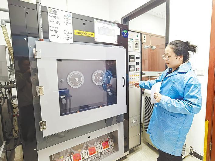 武汉市华测检测技术有限公司工作人员正在检测产品。(湖北日报全媒记者 林晶 摄)