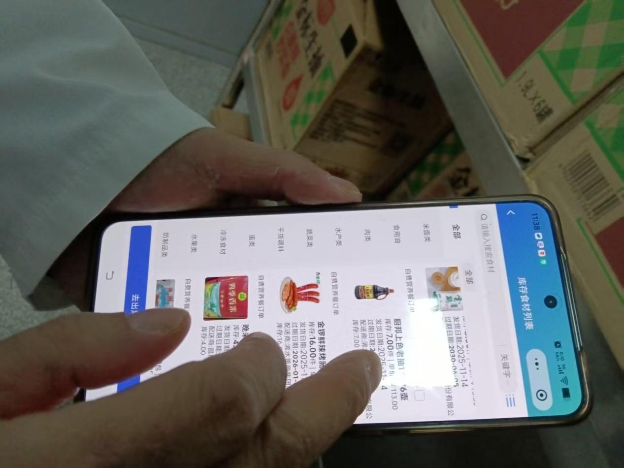 上午和下午的领料时间,各班组长准时到来。徐刚遵循“先入库先出库”原则,在系统中选择相应批次食材,称重、核对,视频电子秤称重完成出库操作,视频电子秤称重自动拍照上传留存。“每一步操作都在系统里留痕,”他边说边展示着出库记录,“谁领的、领的什么、什么时候领的,清清楚楚。库存数量自动扣减,再也不用人工一遍遍核算了。”“出库记录自动传输到财务系统,作为财务结算的唯一支付凭证。”