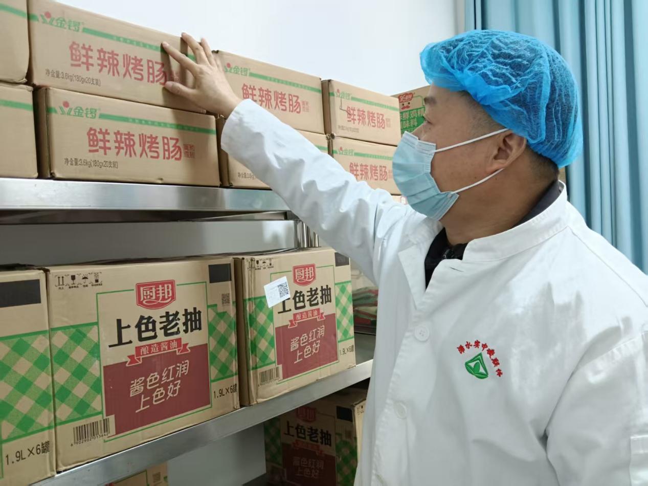 徐刚首先登录手机阳光后勤终端,快速查阅当天各班组提报的领料需求。平台上,米面油及食品添加剂、蔬菜等食材的预出库信息一目了然。他根据领料要求,精准备货。尤其是食品添加剂,他严格按照食品添加剂的使用规定来确定用料配比称重,并在系统中实时记录出库数量,确保“精准管理、源头可溯”。“以前凭记忆、靠手记,现在数据跑在前面,心里更有底,也不会错。”徐刚一边用手机扫描食材二维码完成出库确认,一边说道。