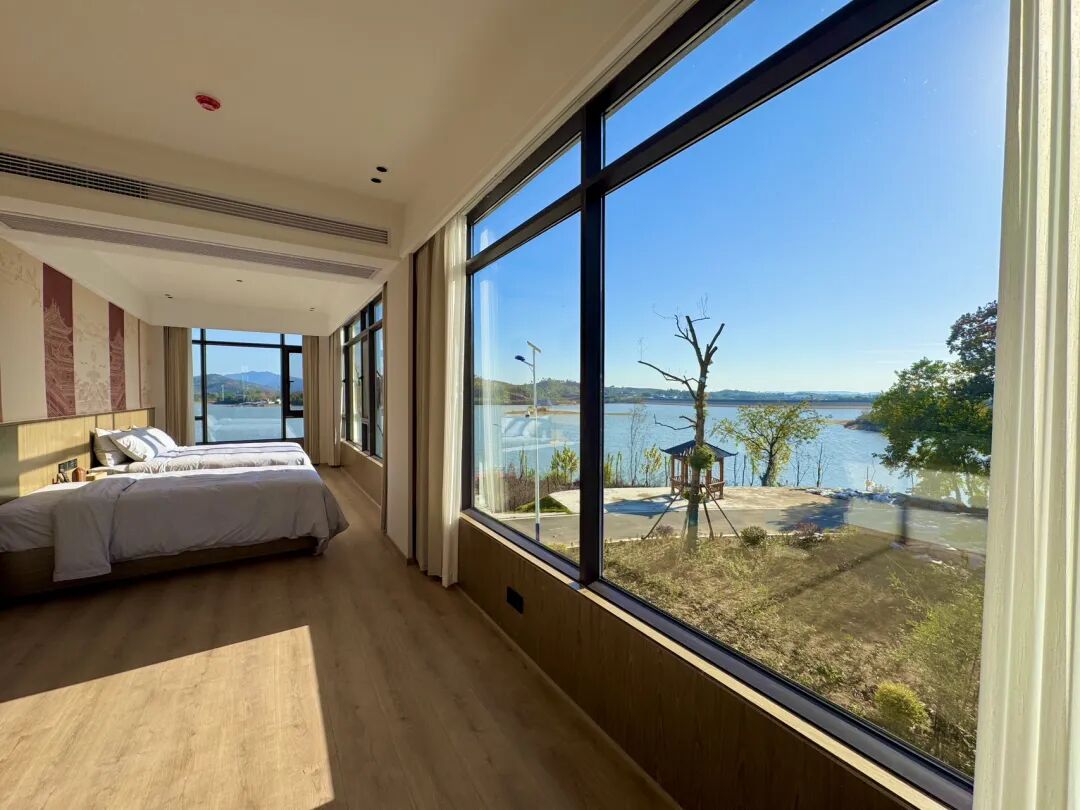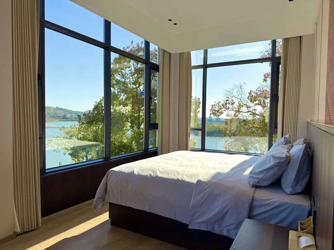 酒店共设61间客房,总计可容纳122人,涵盖河景独栋别墅与标准双人间等多种房型,满足家庭出游、团队建设、商务差旅等不同需求。每间客房设计雅致,设施齐全,致力于为宾客提供宁静舒适的入住体验。