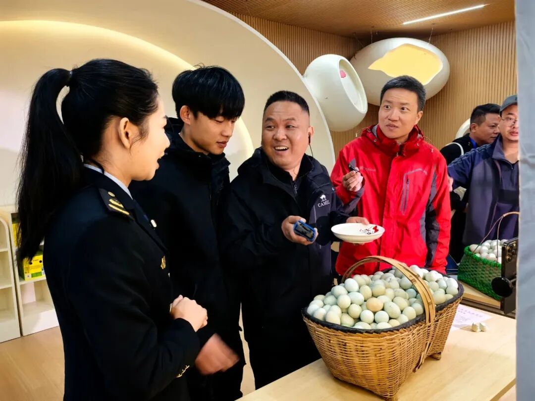 体察团随后参观了电商直播中心和浠水鸡蛋文化馆,了解蛋品通过电商直达全国消费者餐桌的模式,以及浠水蛋品文化的历史与产业发展路径。浠水县副县长李欢重点介绍了品牌建设成果:“浠水鸡蛋成功获评‘全国名特优新农产品’品牌,全县相关商标申请量达1339件,同比增长64.50%,增速全市第一。”他进一步阐述了品牌发展规划,涵盖搭建品牌矩阵、夯实标准支撑、提升文化影响力三大方向。