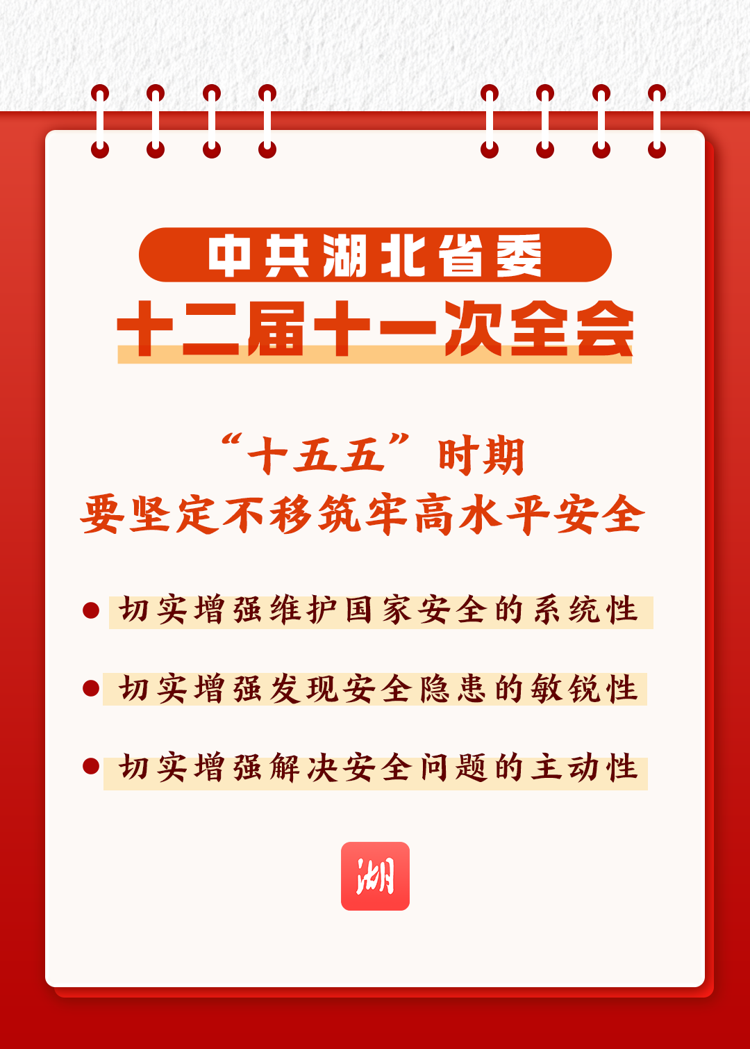 11月21日,中国共产党湖北省第十二届委员会第十一次全体会议在武汉举行。 会议对未来五年湖北经济社会发展工作作出全面系统部署。“十五五”时期湖北怎么干,支点建设取得何种成效? 收藏这份学习笔记,勇担使命,奋发进取! 来源:湖北日报