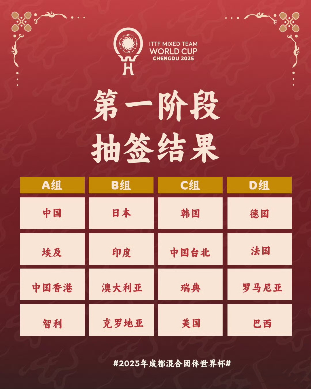 29日,2025—2026赛季国际雪联大跳台世界杯云顶站单板滑雪男子决赛,中国选手苏翊鸣获得冠军,葛春宇获得亚军。央视新闻,赞2万29日,2025年成都国际乒联混合团体世界杯第一阶段抽签结果出炉。根据赛程安排,中国队将在今天(30日)11时迎来首个对手中国香港队。
