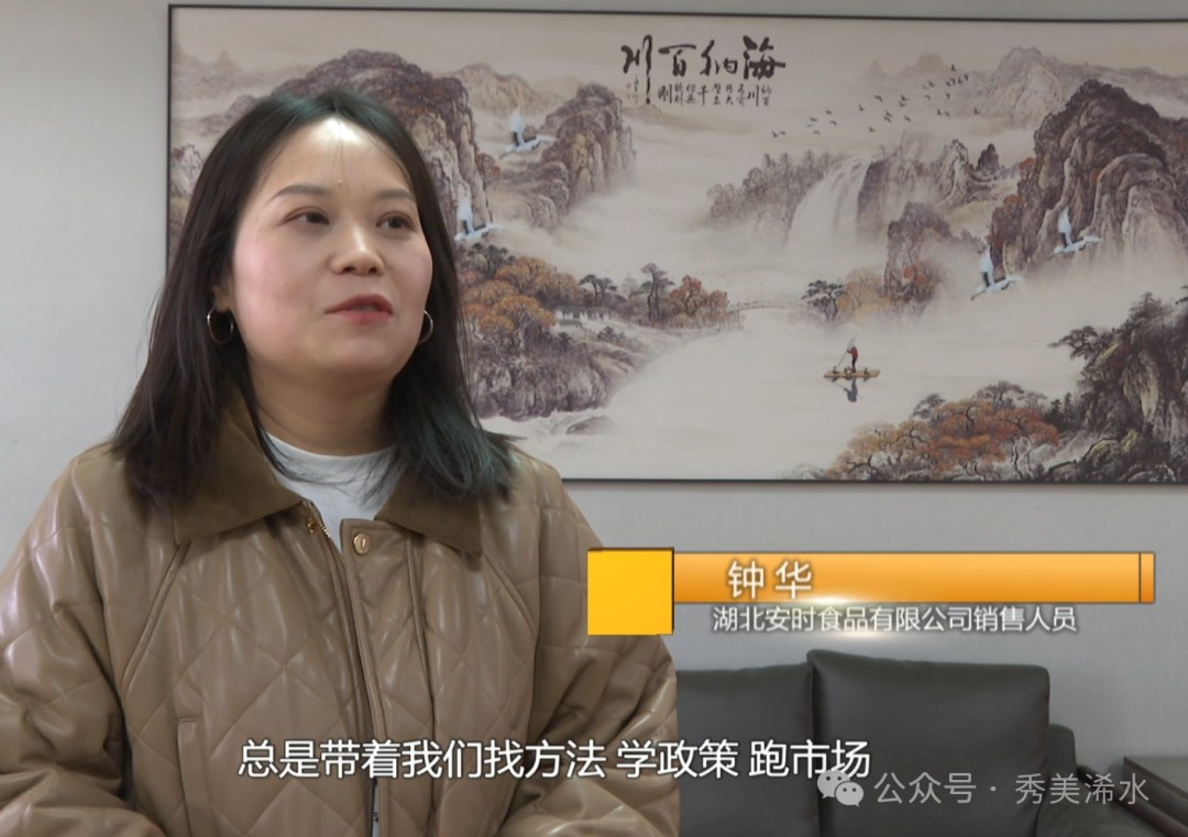 湖北安时食品有限公司销售人员 钟华:聂总身上有一股不服输的劲。面对难题的时候,她从来不抱怨,总是带着我们找方法、学政策、跑市场。她常说要“脚踏实地做事情”,这一点真的是深深影响到我们。