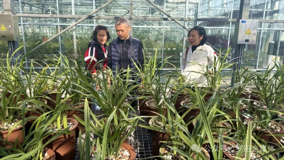 产业园中,阵阵兰香中夹杂着南腔北调的交流声。在河南信阳商人张老板的摊位前,商户正细致地向客户介绍兰花的品种特性和培育技巧,经过一番交流,交易顺利达成,买卖双方脸上都洋溢着满意的笑容。