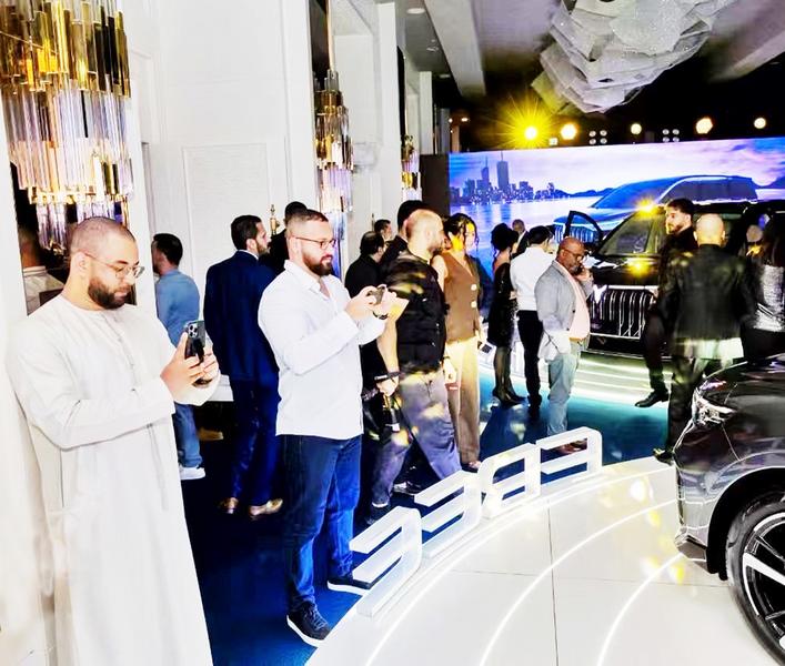 5月9日,岚图汽车在阿联酋举行品牌发布会,受到中东用户的围观。 (岚图汽车供图)