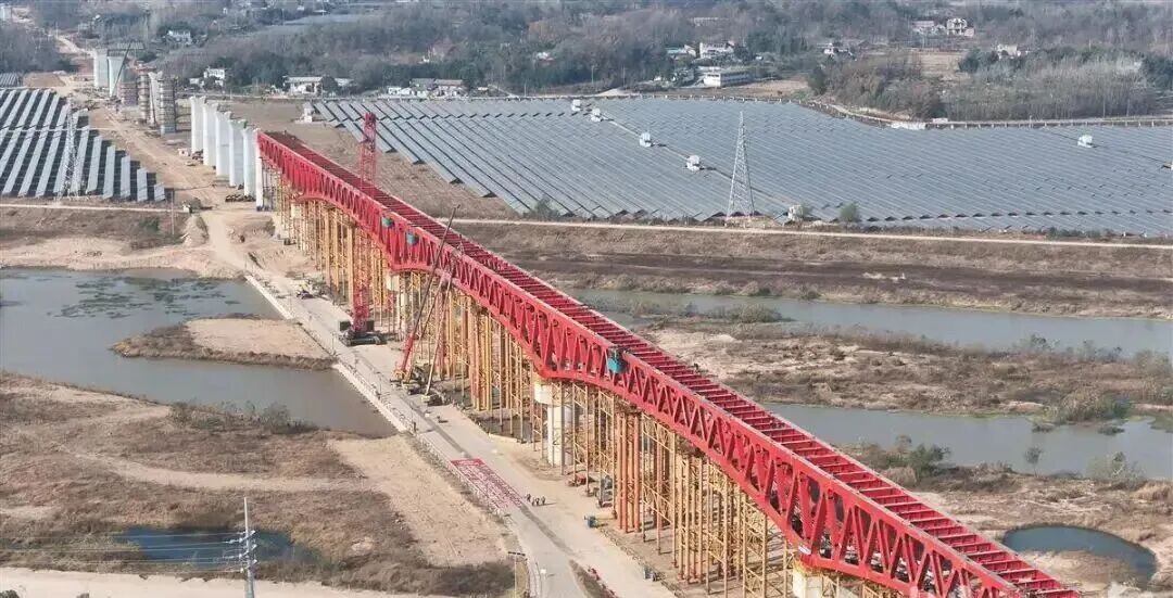 日前,合武高铁金寨史河特大桥钢桁梁成功合龙,标志着桥梁主体结构施工取得突破性进展,为全线贯通奠定了坚实基础。