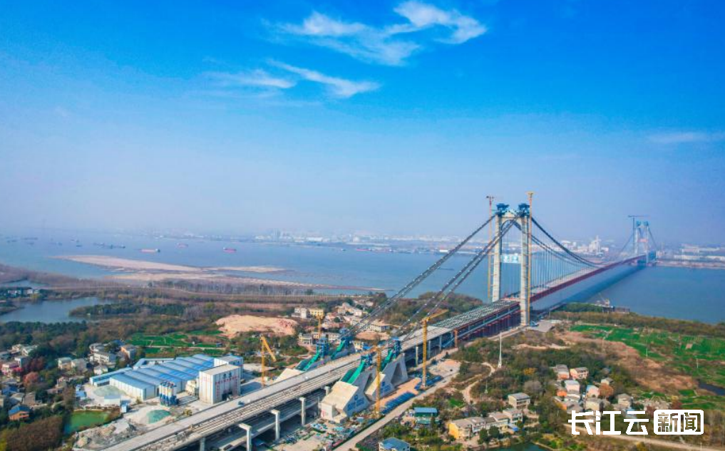 燕矶长江大桥横跨鄂州黄冈两地,采用一跨过江的方式,是世界最大跨径四主缆悬索桥。项目全长约26千米,大桥主跨1860米,上层为六车道高速公路,设计时速100公里,下层为四车道城市快速路,设计时速80公里,是一座集高等级公路与城市快速路于一体的多功能、复合型过江通道。燕矶长江大桥的第三标段,线路全长约9公里,包括鄂州侧主塔、锚碇、桥面、单双层引桥以及下游侧主缆等施工内容。其中,主跨共设有69个梁段,已于今年11月22日顺利合龙。