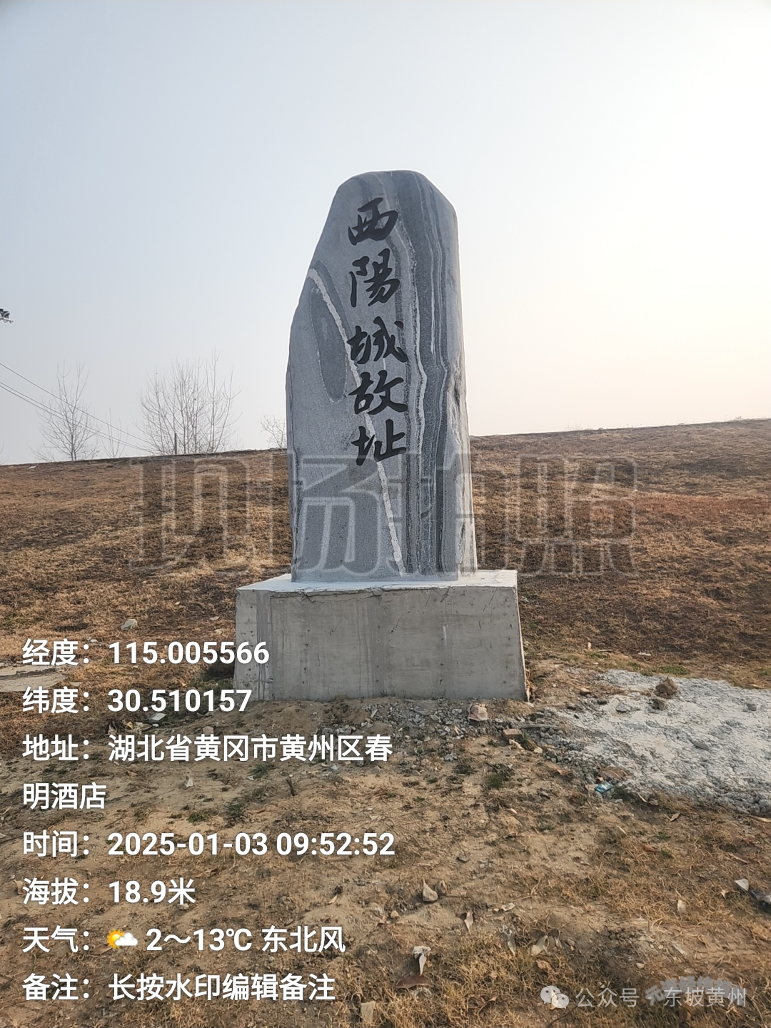 根据以上文章及历史资料记载,考察人员进行现场考证并研讨、分析、认定:西阳城故址位于黄州区陶店乡孙镇村(经度:115.005566 纬度:30.510157 海拔:18.9米)的周边。