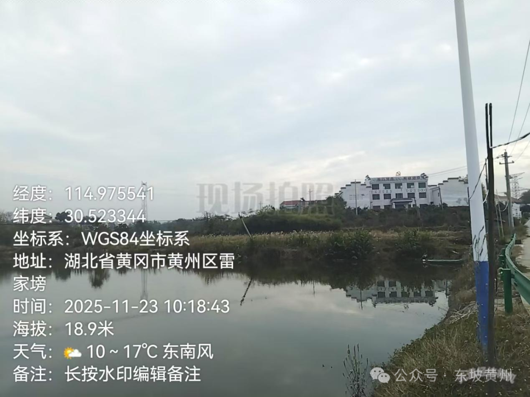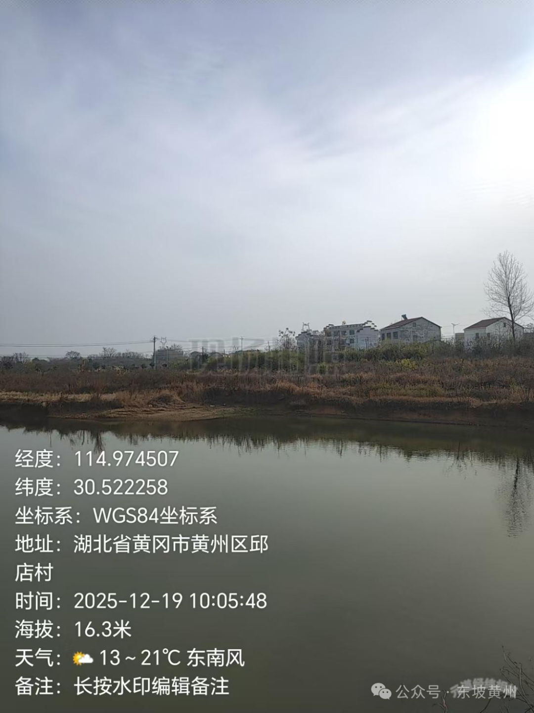 根据以上文章及历史资料记载,考察人员进行现场考证并研讨、分析、认定:三江驿·东坡亭故址位于黄州区堵城镇西河村,是原唐宋时期上新生洲的古码头(经度:114.848200 纬度:30.567276 海拔:16.0米)的周边。
