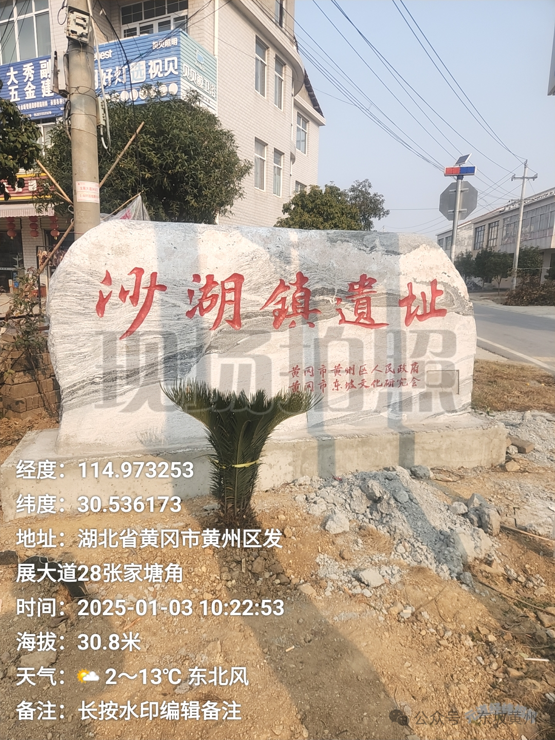 根据以上文章及历史资料记载,考察人员进行现场考证并研讨、分析、认定:沙湖镇遗址位于黄州区陶店乡政府附近(经度:114.973253 纬度:30.536173 海拔:30.8米)的周边。