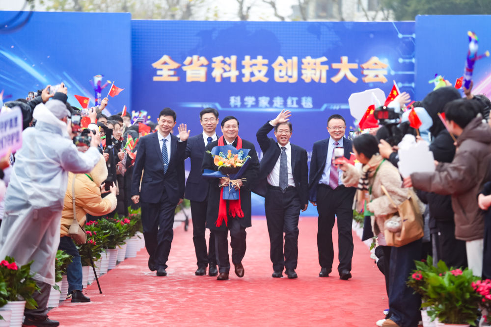 1月4日,湖北省科技创新大会,获科学技术突出贡献奖的丁烈云院士(中)走红毯(图|柯皓)我们马不停蹄,是为了不断进化“抓创新发展像拼命”的实干力量。科技创新是严肃的,来不得半点虚假。科创竞争是严酷的,容不得半点侥幸。饱含血泪耻辱的近代中国,差距在哪里?就在科技创新。走在中国式现代化新征程上的中国,力量和前途在哪里?也在科技创新。具有全国影响力的科技创新高地坐等不来,必须诉诸于实实在在的行动:看齐更高标准、更高要求,自我加压、抬升标杆;全力支持科技工作者拿出“人生能有几回搏”的干劲,放开手脚创新创造;破除体制机制障碍,最大限度汇聚各方力量,把湖北建成科技创新“强磁场”、创新创业“优选地”。现在距离实现建成科技强国目标,不到10年时间,具有决定性意义的“十年磨一剑”阶段已经开始了。2026年是“十五五”开局之年,我们如何从新一年的起始,下足“磨剑”功夫?跃马扬鞭是破局的起点,万马奔腾是聚能的过程,马不停蹄是成事的保障,这是我们的“精神铠甲”,也是我们的动力源泉。