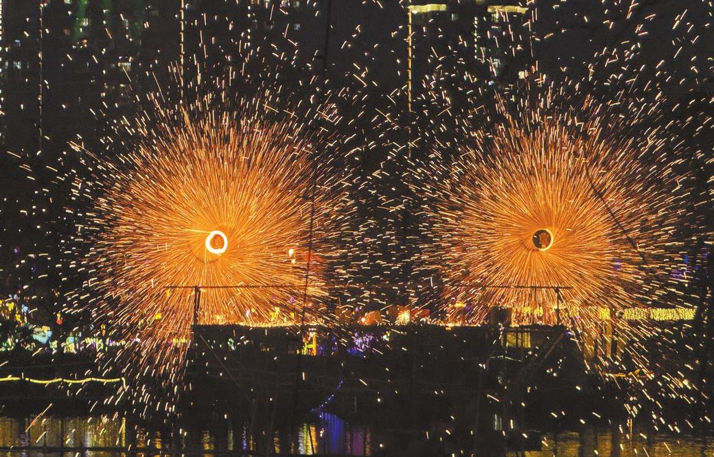 非遗展演区的打铁花表演