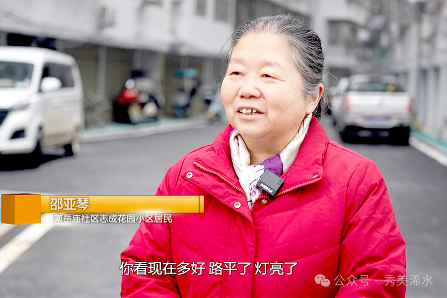 南岳庙社区志成花园小区居民 邵亚琴:你看现在多好!路平了,灯亮了,车子有地方停了,电动车充电也安全方便。感觉小区“年轻”了二十岁,住着特别舒心。