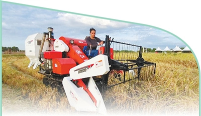 在巴西阿波迪的一处稻田里,一名巴西妇女在家庭农场操作中国生产的水稻联合收割机。迪奥任塞·诺夫雷加摄