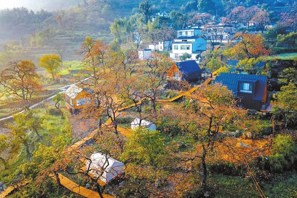 在錾字石村,甜柿种植户老熊的手机响个不停。“以前柿子熟了愁销路,现在还没下树就被景区和电商预定完了。”他口中的景区,正是“柿里牧歌”。这颗拥有数百年种植历史的“中国甜柿”,在三里畈经历了价值的三级跳——