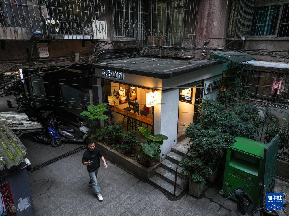 藏在贵阳市云岩区居民楼内的黑石咖啡店(2025年6月23日摄,无人机照片)。新华社记者 杨文斌 摄