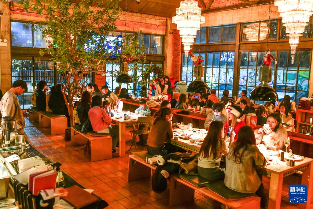 顾客在贵阳市南明区体育路行匠厨房餐厅用餐(2025年12月25日摄)。新华社记者 杨文斌 摄