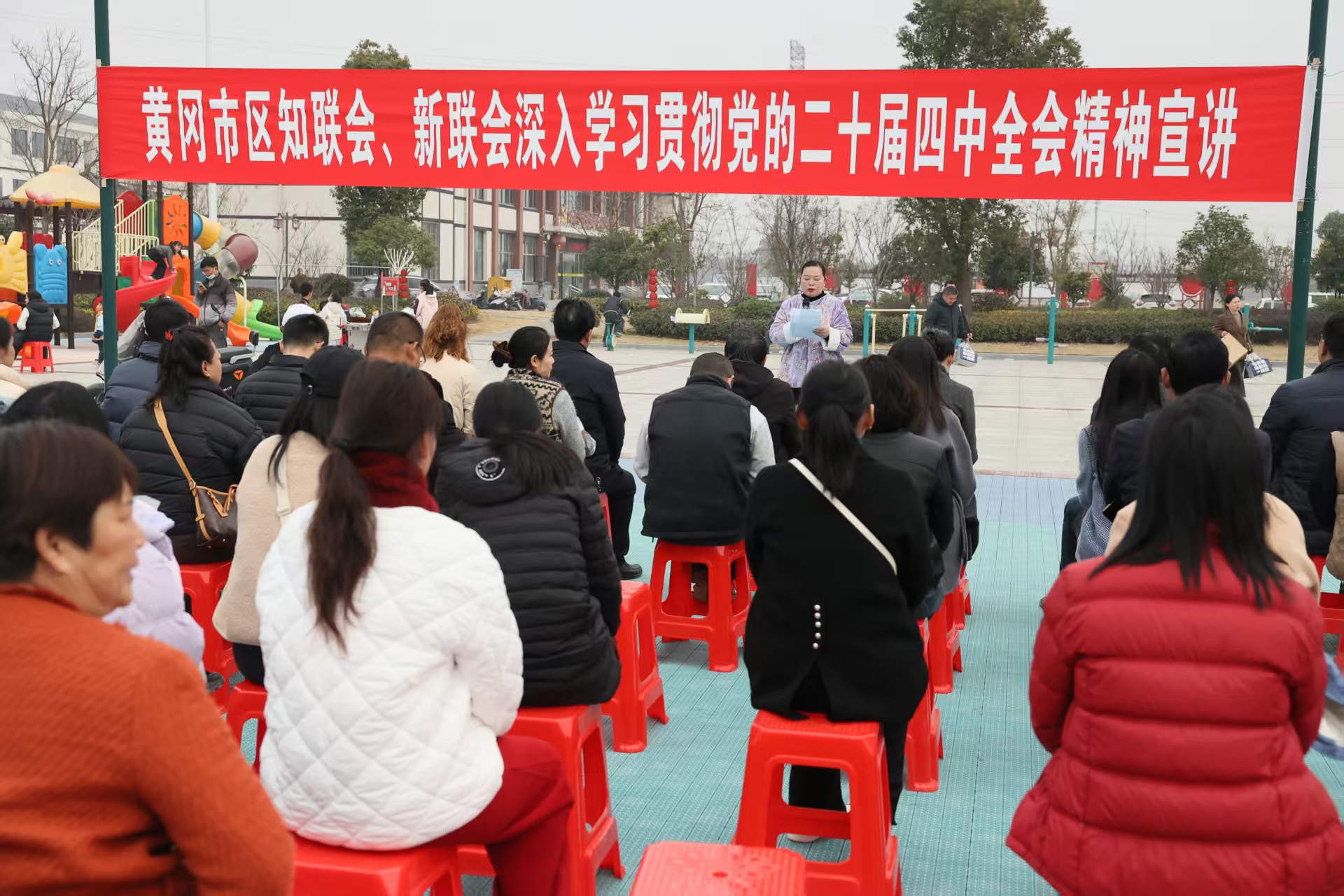 活动场地转移至彩虹操场,氛围也从烟火氤氲转向思想激荡。全国道德模范、区新联会会员陈英紧扣“中国式现代化”“民生保障”等核心要义,结合黄冈发展实际与党外人士履职案例,深入浅出地解读全会精神,引导大家思考如何将宏观部署转化为推动黄冈发展的具体行动。