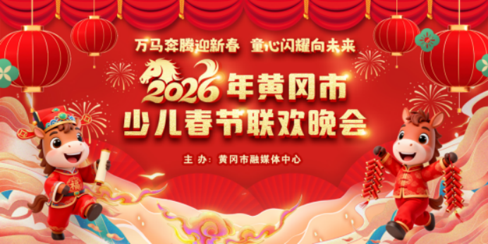 在 2026 年马年新春即将到来之际,由黄冈市融媒体中心倾力打造的 “万马奔腾迎新春,童心闪耀向未来”2026年黄冈市少儿春节联欢晚会,将成为黄冈全市少年儿童展示自我、逐梦绽放的盛大舞台。作为黄冈本土最具影响力的少儿文艺品牌活动之一,本届晚会延续了往届高水准、高口碑的制作传统,以 “童心” 为内核,以 “未来” 为方向,通过丰富多彩的艺术形式,全方位展现黄冈少年儿童积极向上、朝气蓬勃的精神风貌,为全市观众送上一份充满童真与活力的新春祝福。