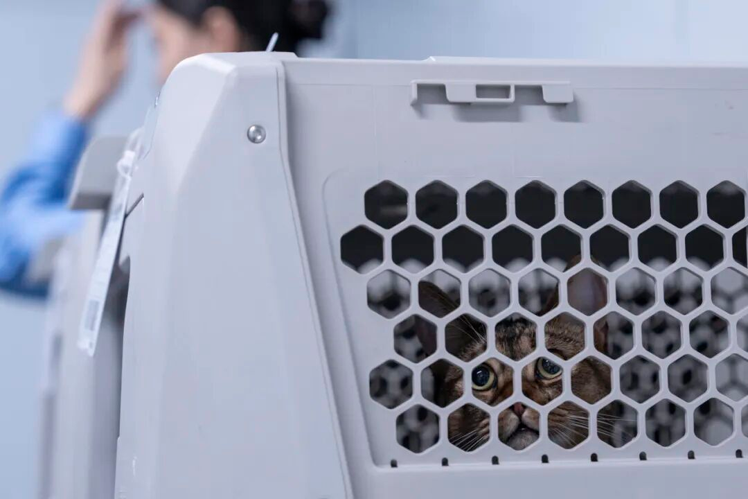 2025年7月1日,一只宠物猫在专用宠物运输箱内“等待乘车”。伍志尊摄(新华社)