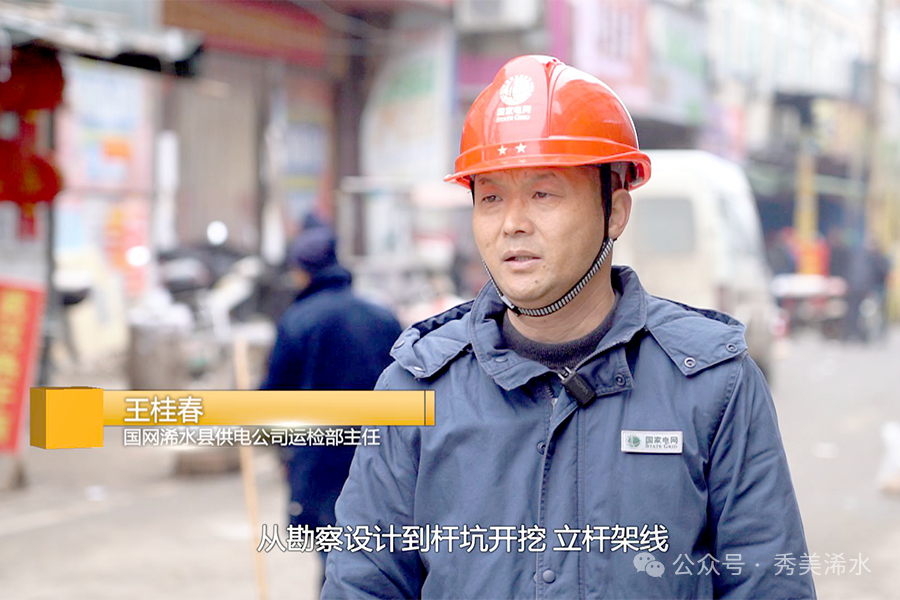 巴河镇巴驿供电营业所生产专责 杨旺:我们正在争分夺秒进行杆线入地和设备更新。分组进行组立电杆,展放导线,必须在春节前,让老街家家户户都用上安心电、稳定电。