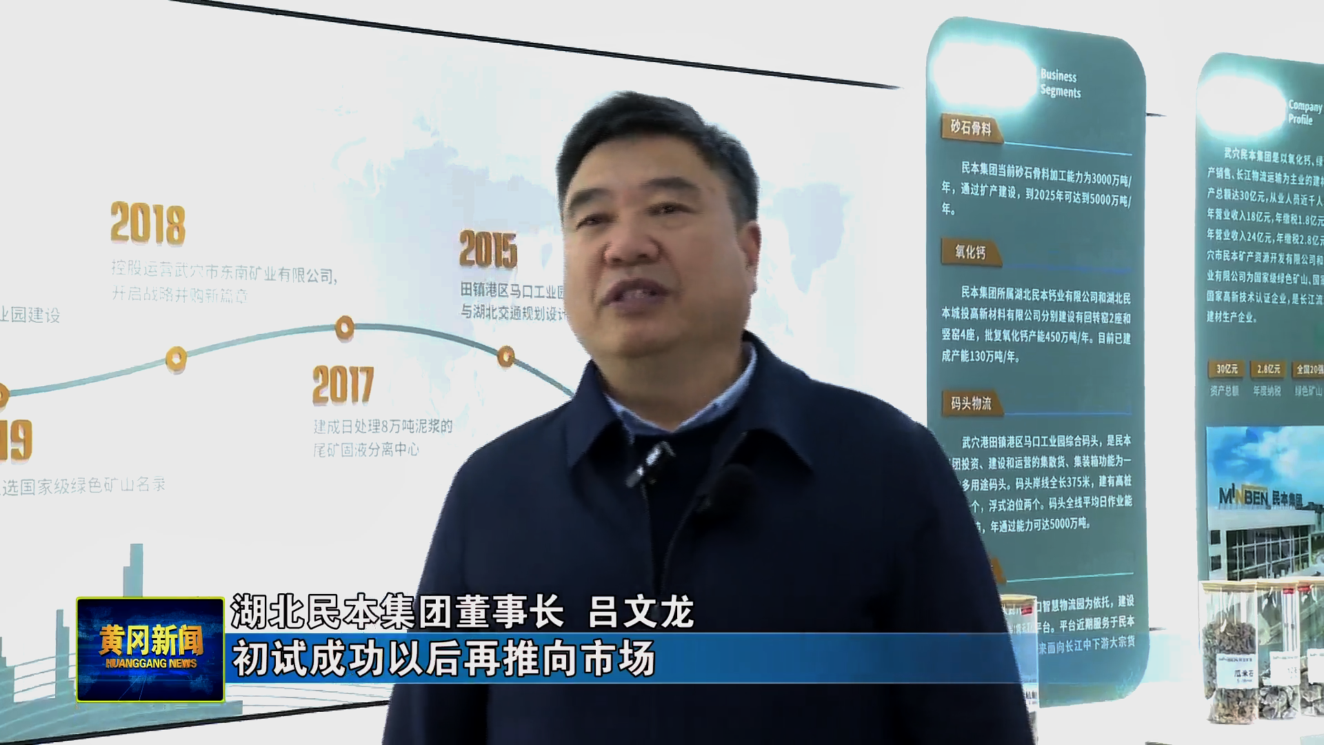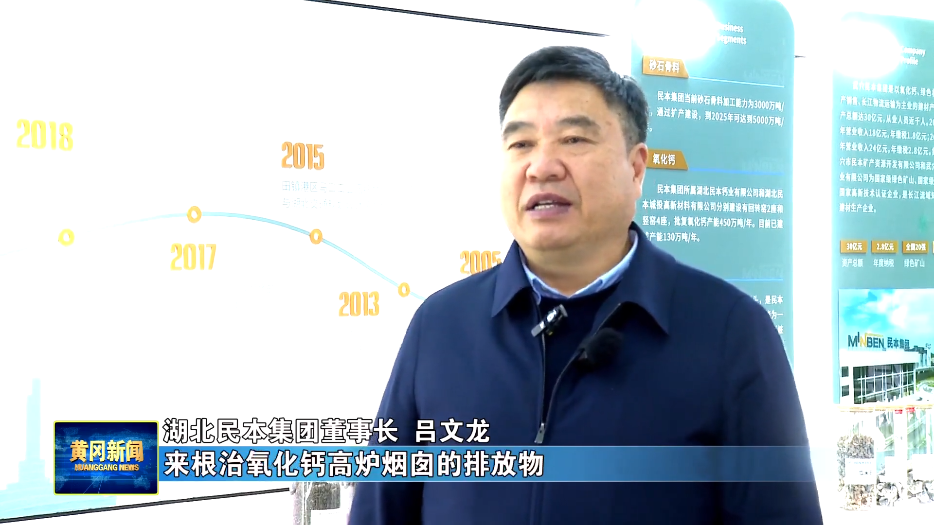 民本集团董事长 吕文龙:利用高比表氢氧化钙来根治氧化钙高炉烟囱的排放物,使他们达到国家A级绩效标准。