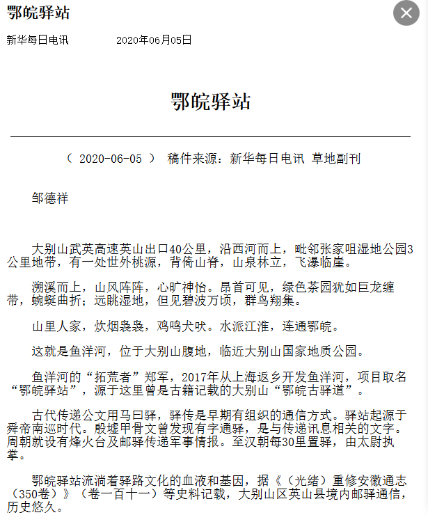 鄂皖驿站流淌着驿路文化的血液和基因,据《(光绪)重修安徽通志(350卷)》(卷一百十一)等史料记载,大别山区英山县境内邮驿通信,历史悠久。