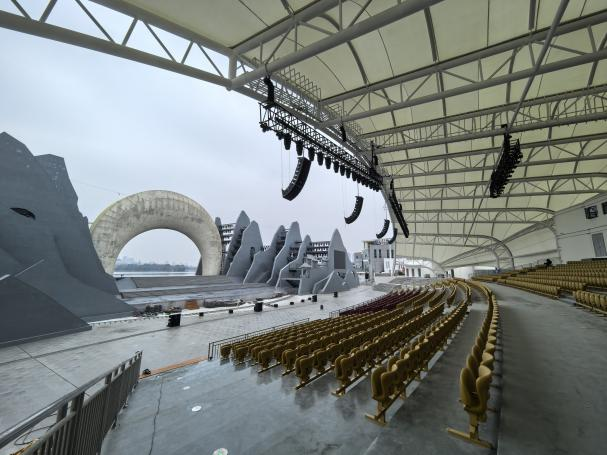 2月9日,记者走进剧场,最直观的感受是“从容”。观众席上方新建的膜结构天棚,像一把打开的“天空之伞”,巧妙平衡了浪漫与实用——既保留了“雨中观演”的诗意想象,又确保了现场1374名观众无论晴雨都能舒适沉浸。