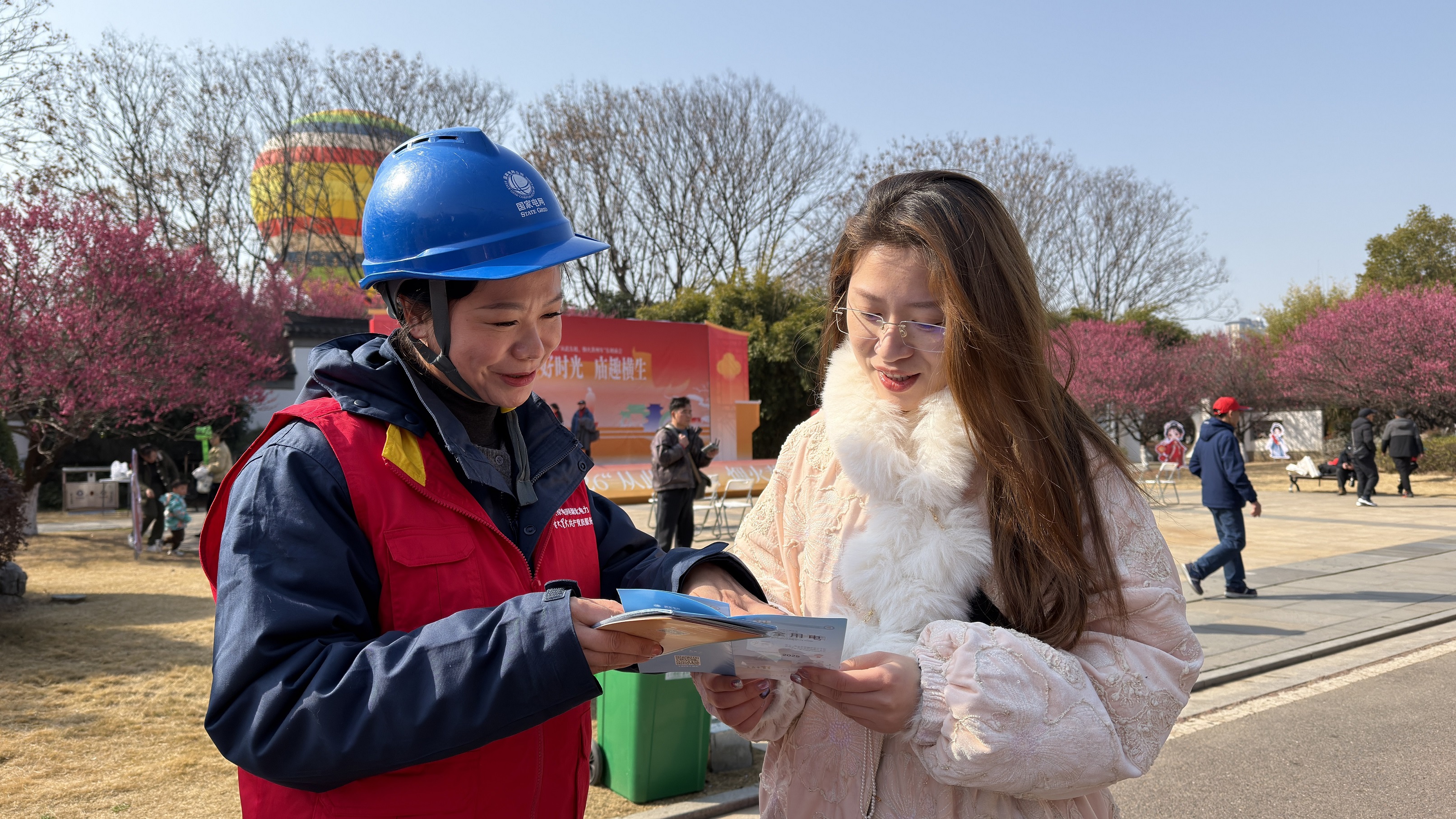 黄冈市遗爱湖梅园内,繁花似锦,吸引了众多游客前来观赏。黄州区供电中心工作人员化身“温暖使者”,主动将优质供电服务送到百姓身边。她们悉心发放安全用电手册,向游客普及安全用电知识。耐心解答用电疑问,为客户排忧解难,还送上喜庆对联和“福”字。游客们的盈盈笑脸与声声感谢,恰似冬日暖阳映照心田,大家纷纷为供电人员的贴心服务点赞。