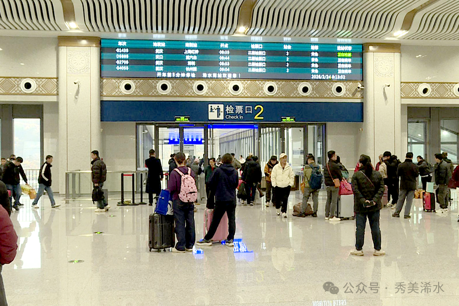 候车大厅内,返岗人员提着行李箱,在闸机口前有序通行。浠水南站开辟专用安检通道和候车区域,确保大家顺畅出行。人群中,手机提示音与交谈声交织,大家眼里闪烁着对新一年的期待。