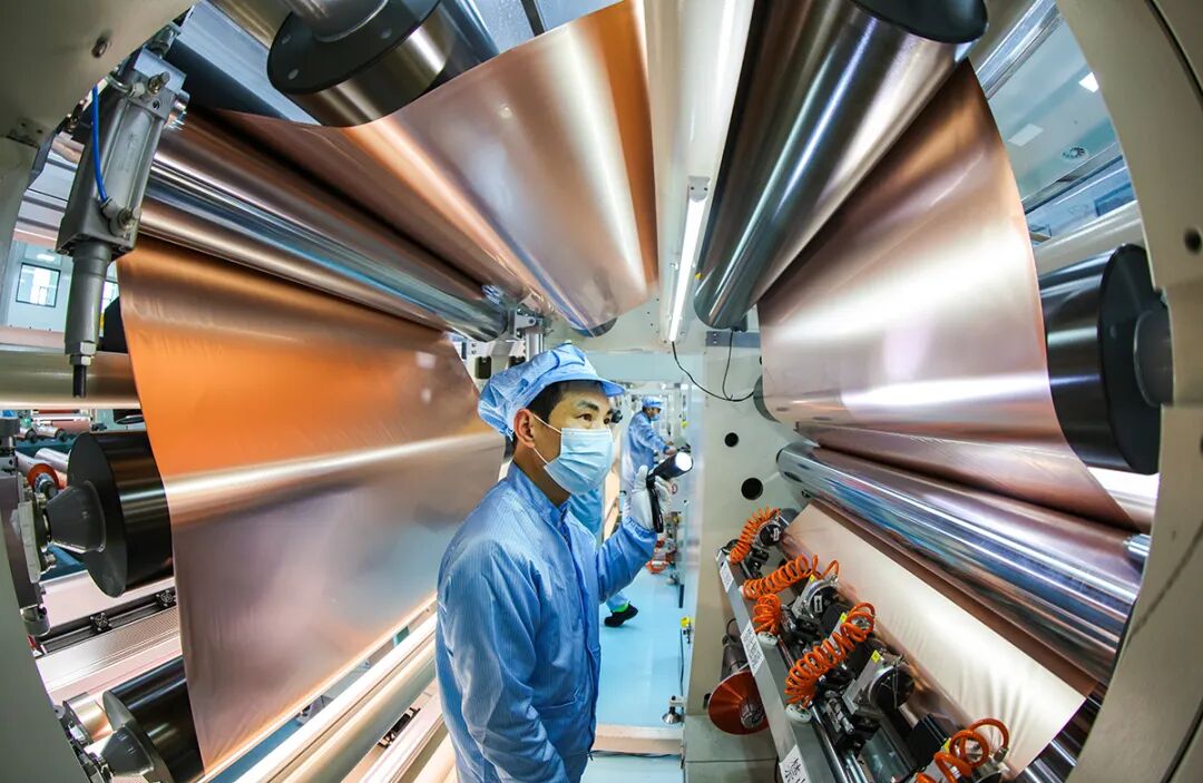 黄石诺德锂电铜箔产业园生产车间里,工作人员有序操作设备生产铜箔 周巍/摄