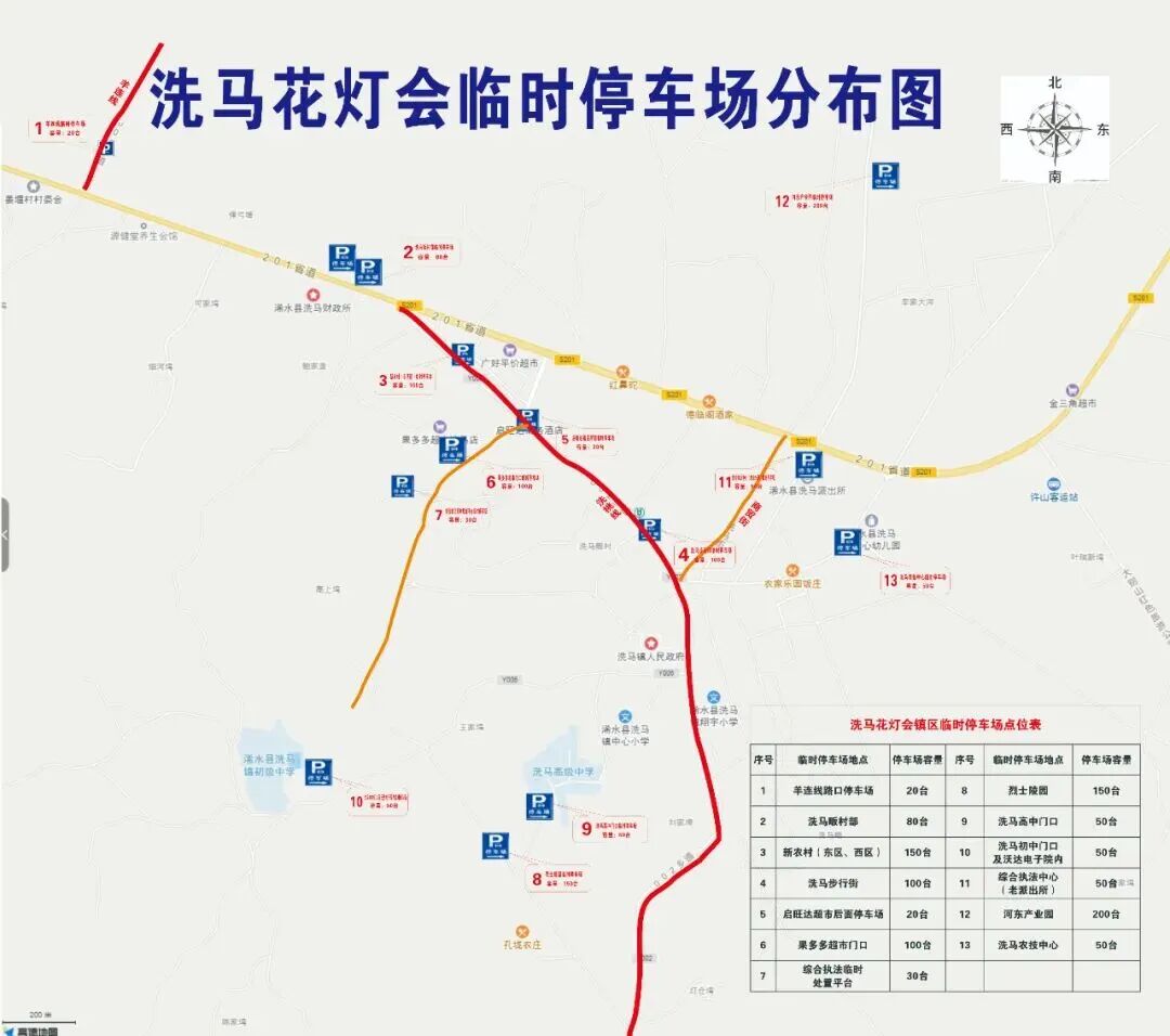 活动临时开通了洗马步行街、果多多超市、新农村等13个停车场,请驾车人员按照指引,到指定停车场有序停放车辆,违规停放的车辆一律拖移。