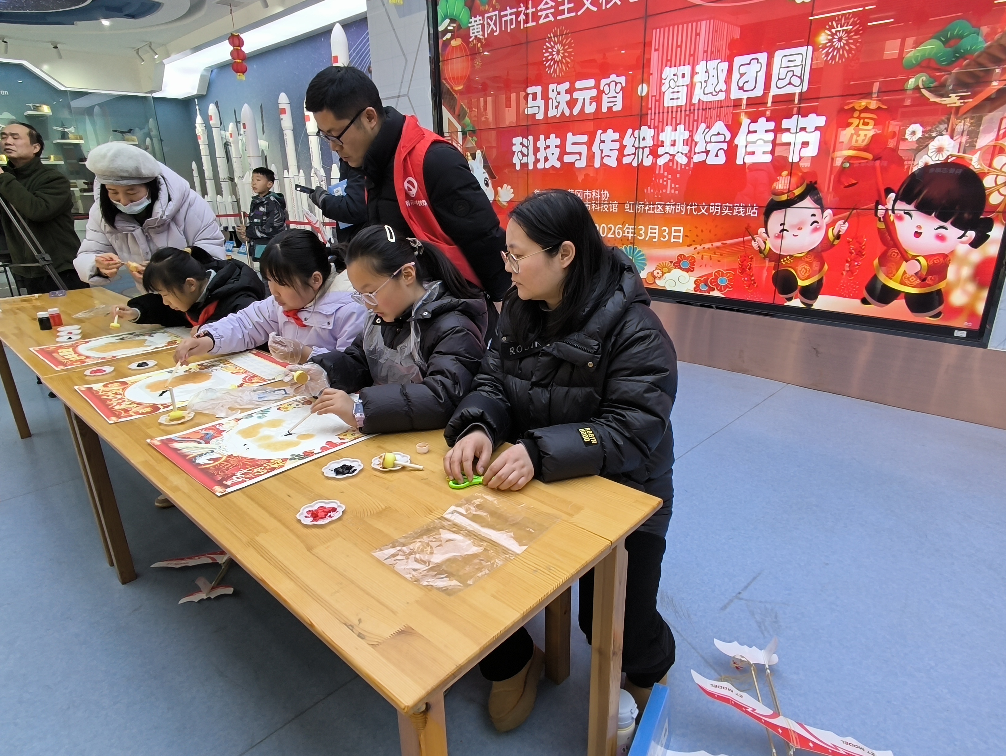 本报讯 (通讯员陈红莉)正月十五元宵佳节,黄冈市科技馆内张灯结彩、喜气洋洋。一场以“马跃元宵·智趣团圆”为主题的科普文化活动温情启幕。本次活动紧扣传统节日内涵,融合科普教育、亲子互动、手工实践与文化体验,精心设置猜灯谜、元宵花灯制作、航空主题飞机小制作、非遗福字拓印四大特色板块,让广大市民在浓浓的节日氛围中感受传统文化魅力、学习科学知识、共享团圆时光,为马年新春增添了一抹兼具文化厚度与科学温度的亮丽色彩。